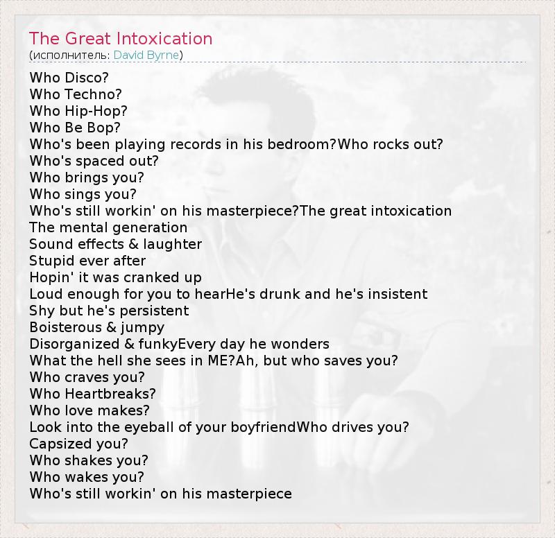 А как ты думаешь, о чем песня "The Great Intoxication" ?