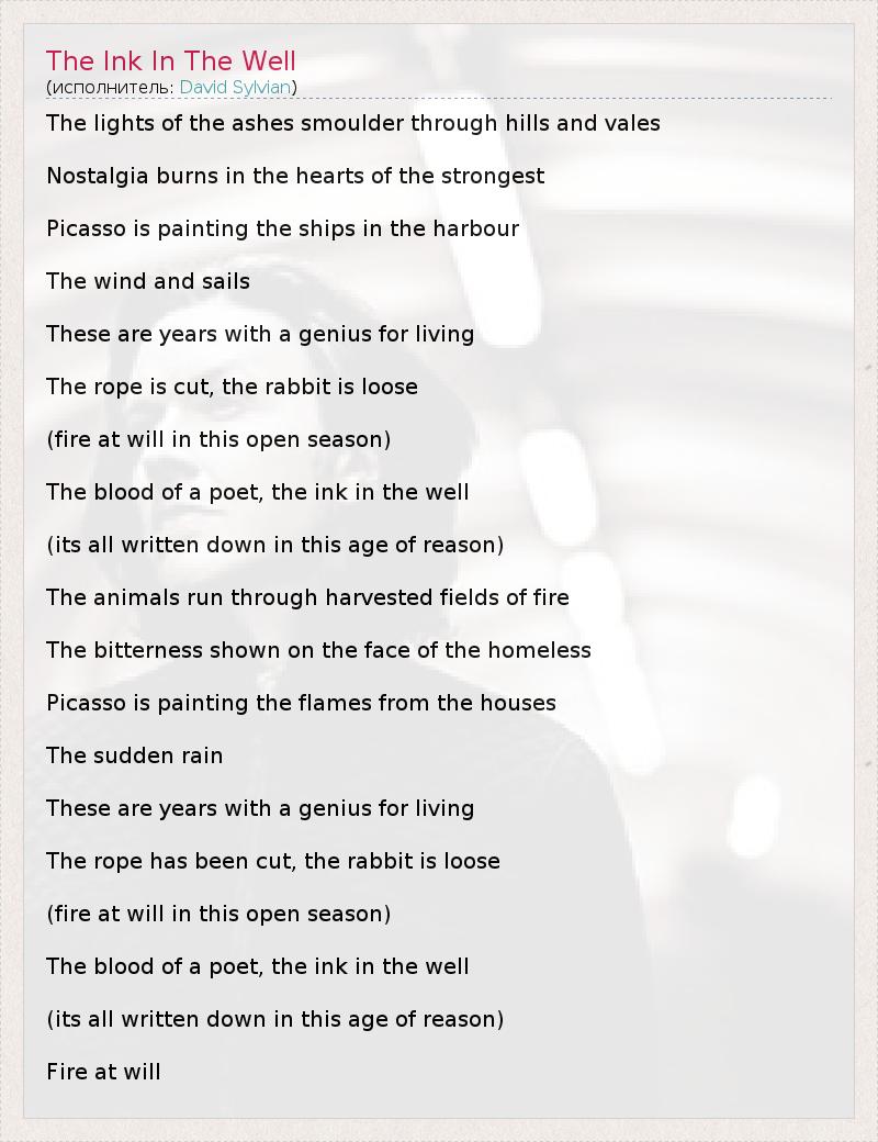 А как ты думаешь, о чем песня "The Ink In The Well" ?