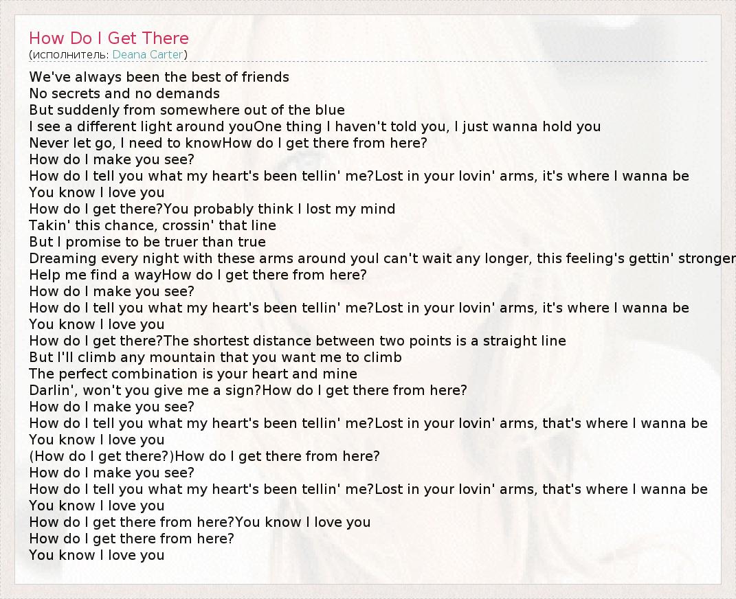 А как ты думаешь, о чем песня "How Do I Get There" ?