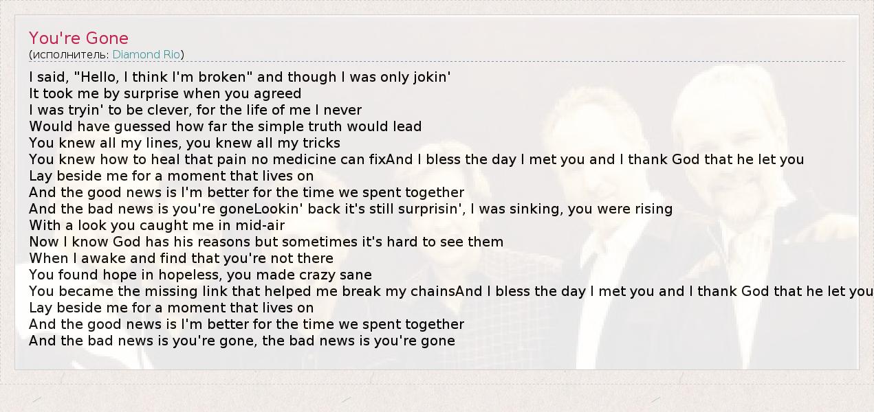 And the bad news is you're goneLookin' back it's still surprisin', I was sinking, you were rising