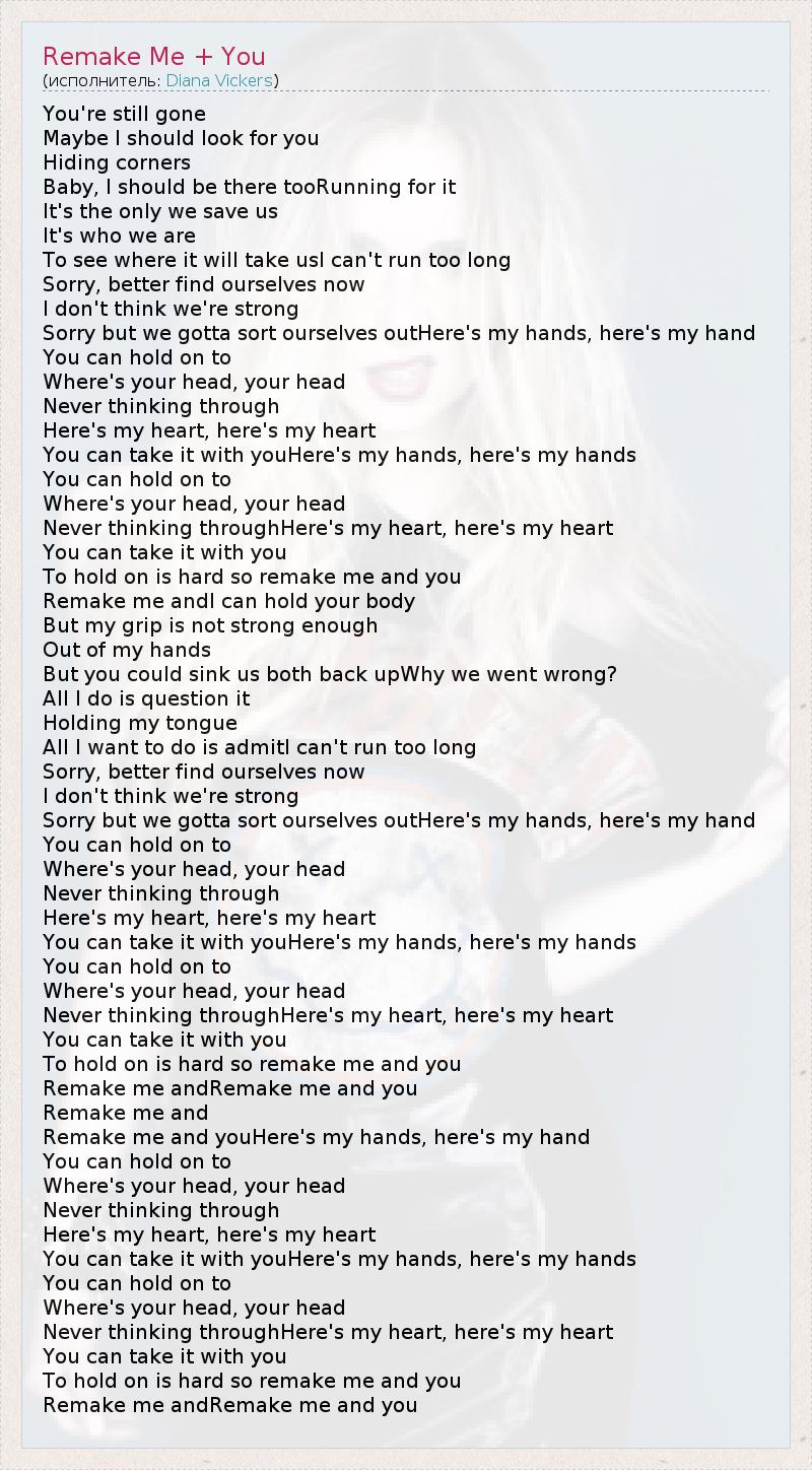 А как ты думаешь, о чем песня "Remake Me + You" ?