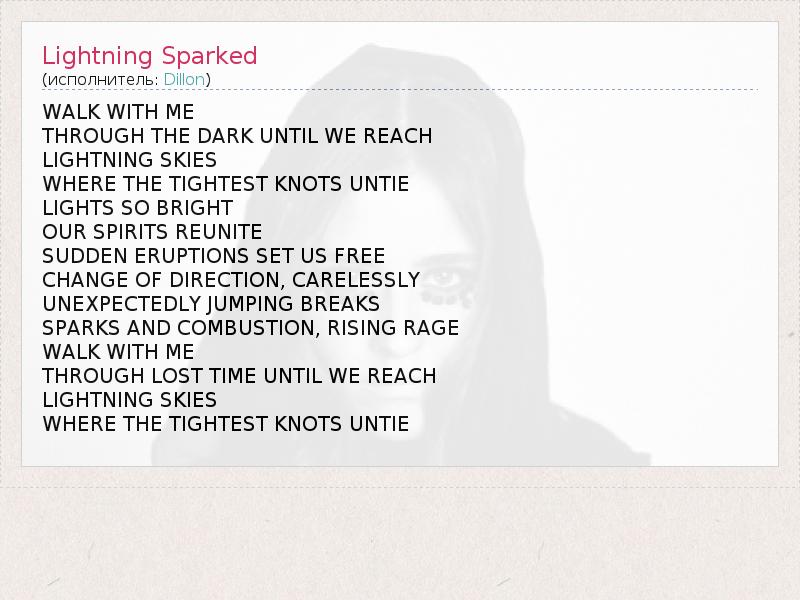 А как ты думаешь, о чем песня "Lightning Sparked" ?