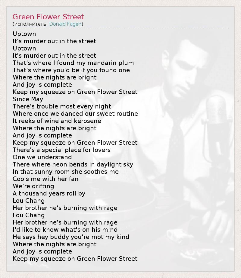 А как ты думаешь, о чем песня "Green Flower Street" ?