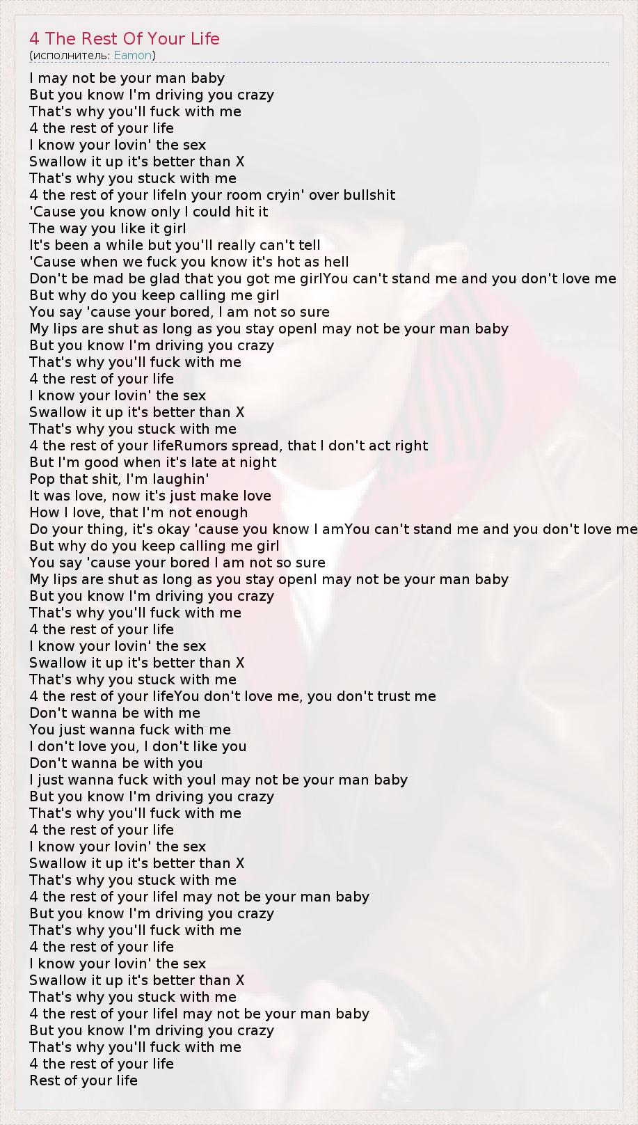 ГлавнаяИсполнителиEamon4 The Rest Of Your Life
