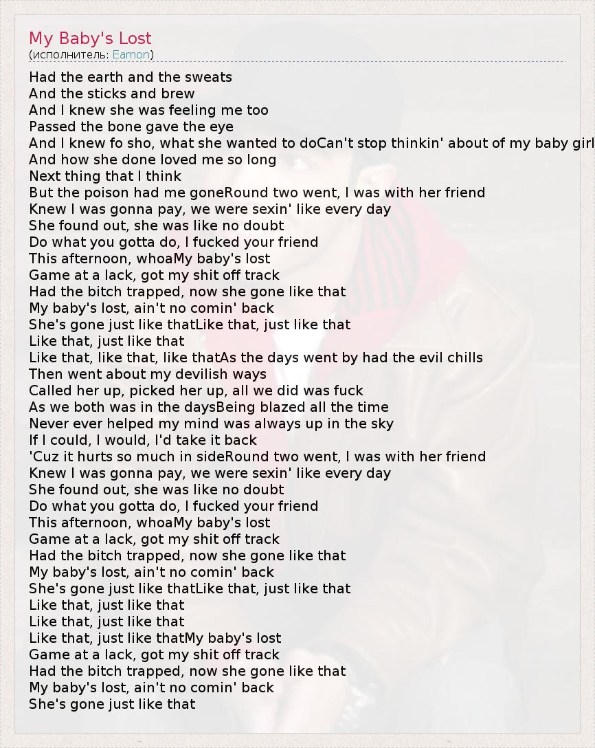 А как ты думаешь, о чем песня "My Baby's Lost" ?