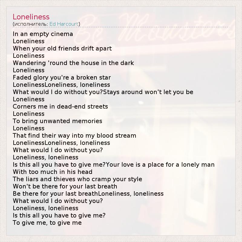 А как ты думаешь, о чем песня "Loneliness" ?