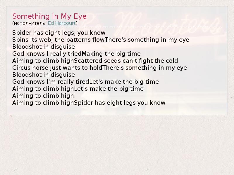 А как ты думаешь, о чем песня "Something In My Eye" ?