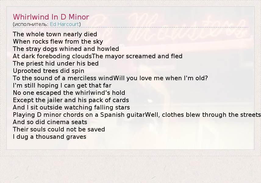 А как ты думаешь, о чем песня "Whirlwind In D Minor" ?
