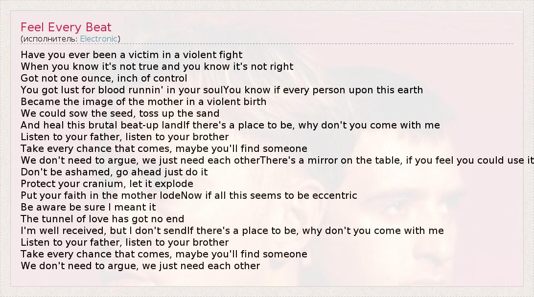 А как ты думаешь, о чем песня "Feel Every Beat" ?
