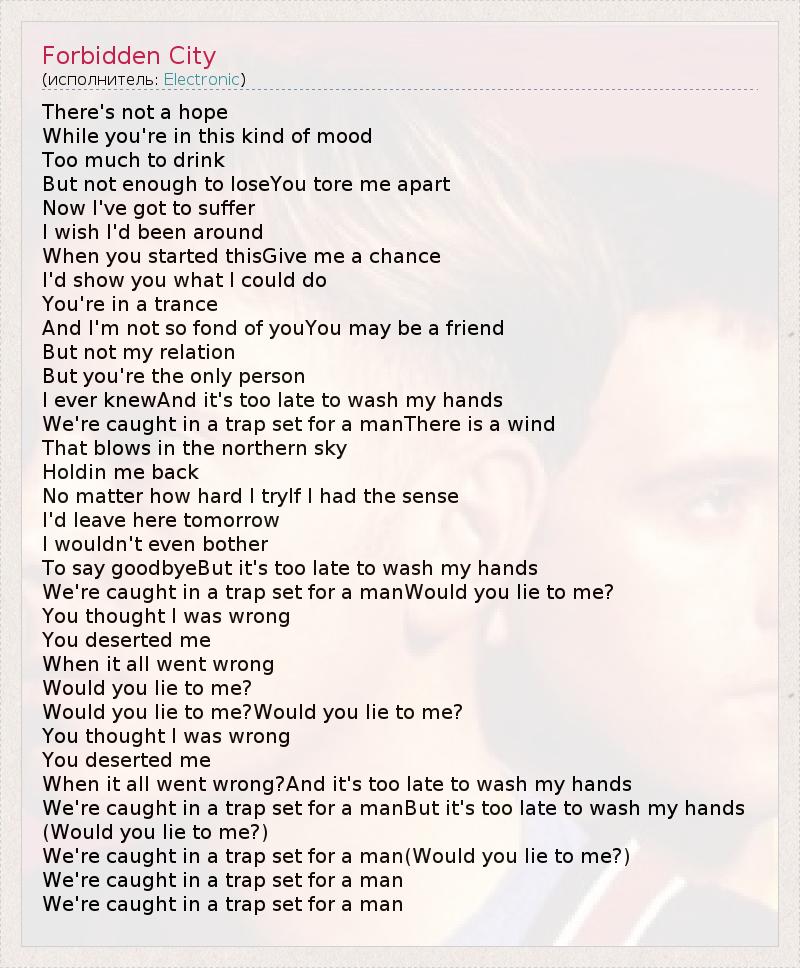 А как ты думаешь, о чем песня "Forbidden City" ?