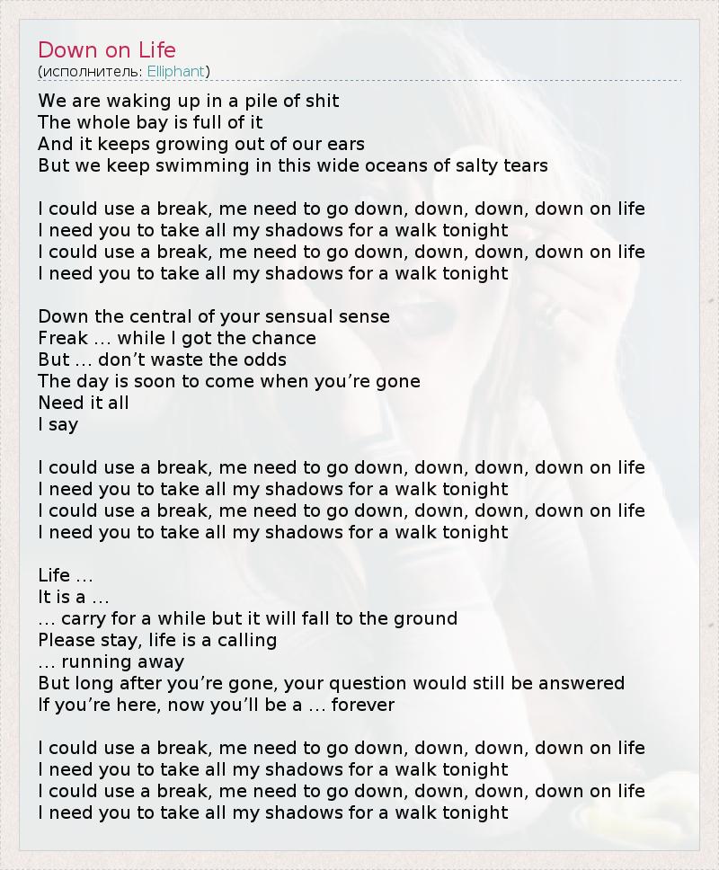 Я мог бы использовать перерыв , мне нужно идти вниз, вниз , вниз, вниз на жизнь