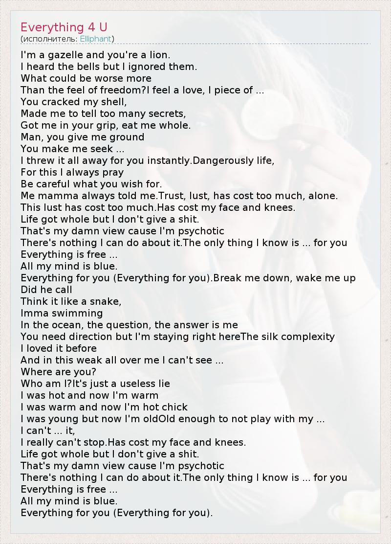 А как ты думаешь, о чем песня "Everything 4 U" ?