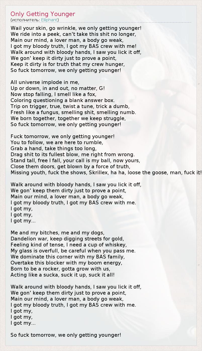 А как ты думаешь, о чем песня "Only Getting Younger" ?