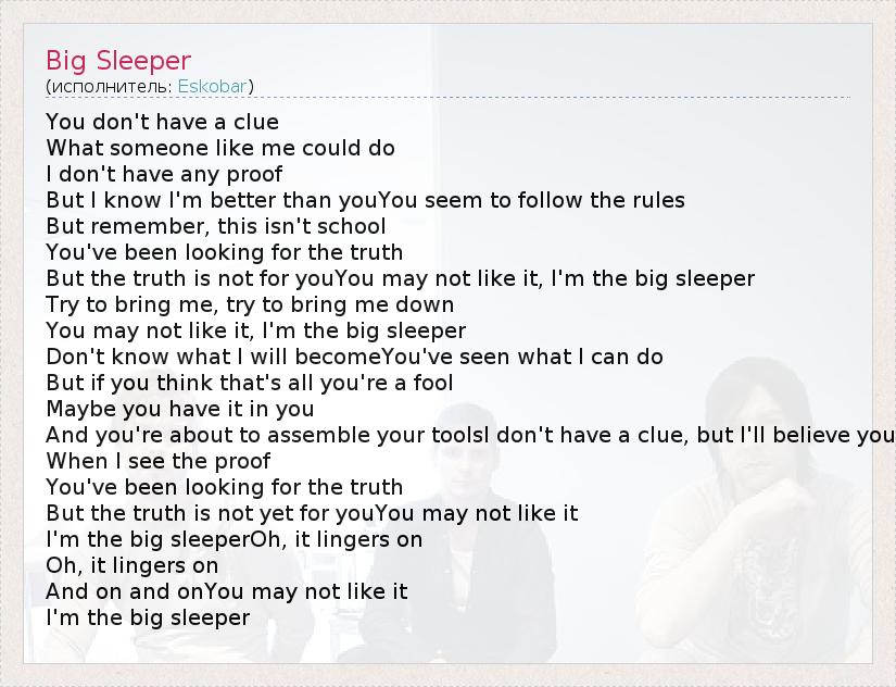 А как ты думаешь, о чем песня "Big Sleeper" ?