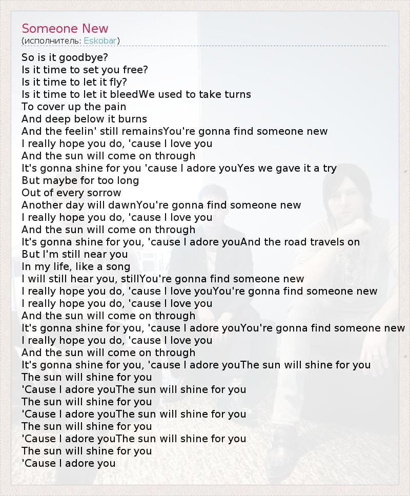 It's gonna shine for you, 'cause I adore youYou're gonna find someone new