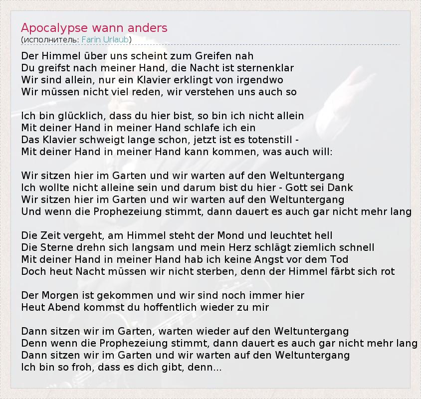 А как ты думаешь, о чем песня "Apocalypse wann anders" ?
