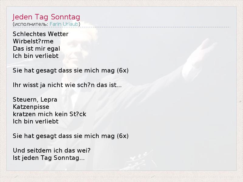 А как ты думаешь, о чем песня "Jeden Tag Sonntag" ?