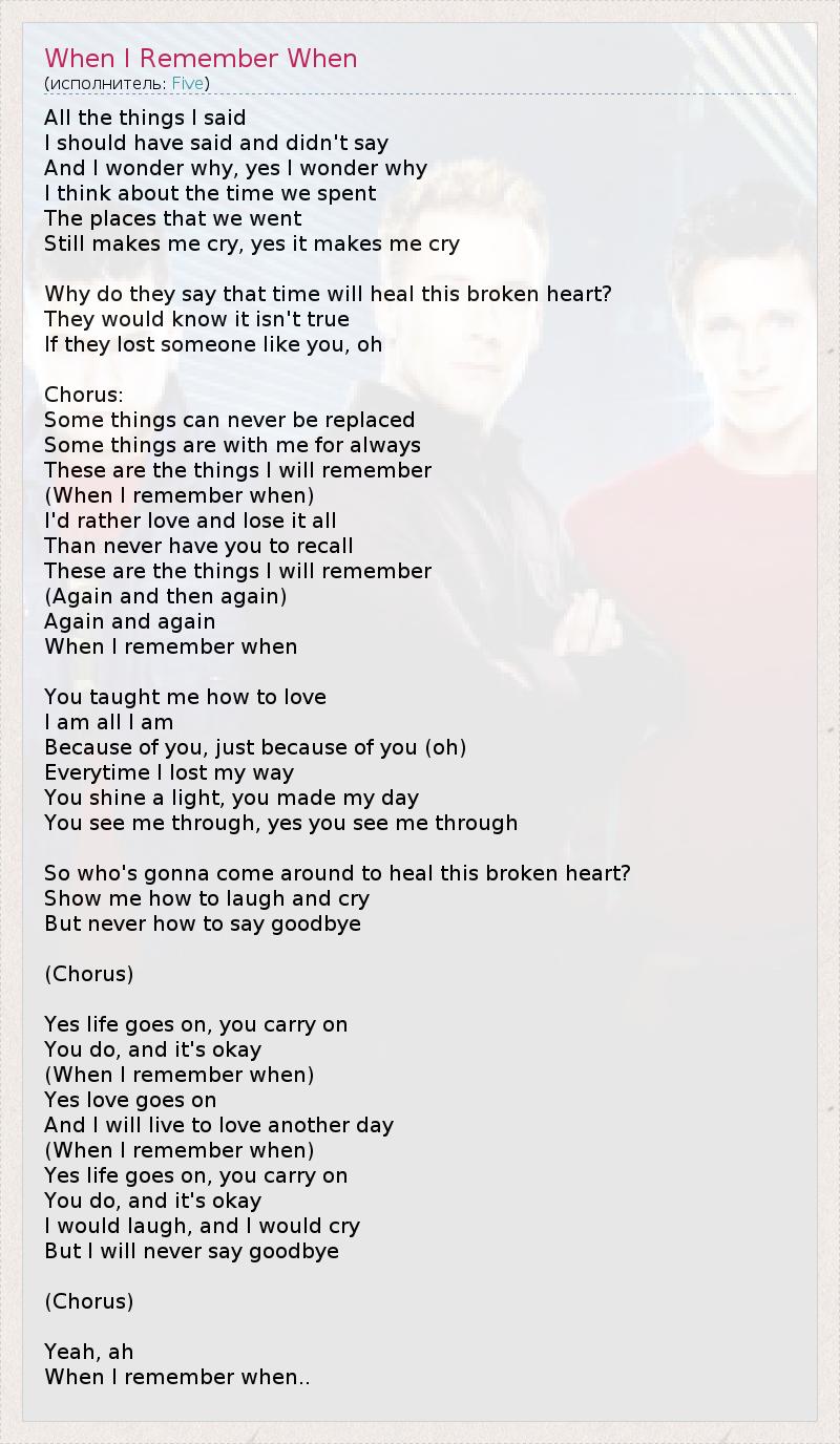 ГлавнаяИсполнителиFiveWhen I Remember When