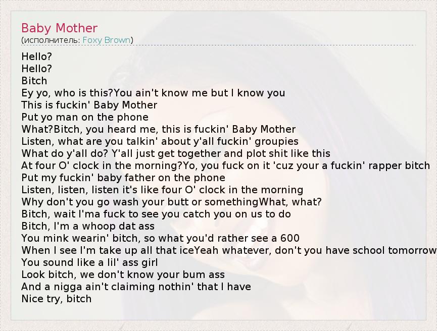 А как ты думаешь, о чем песня "Baby Mother" ?