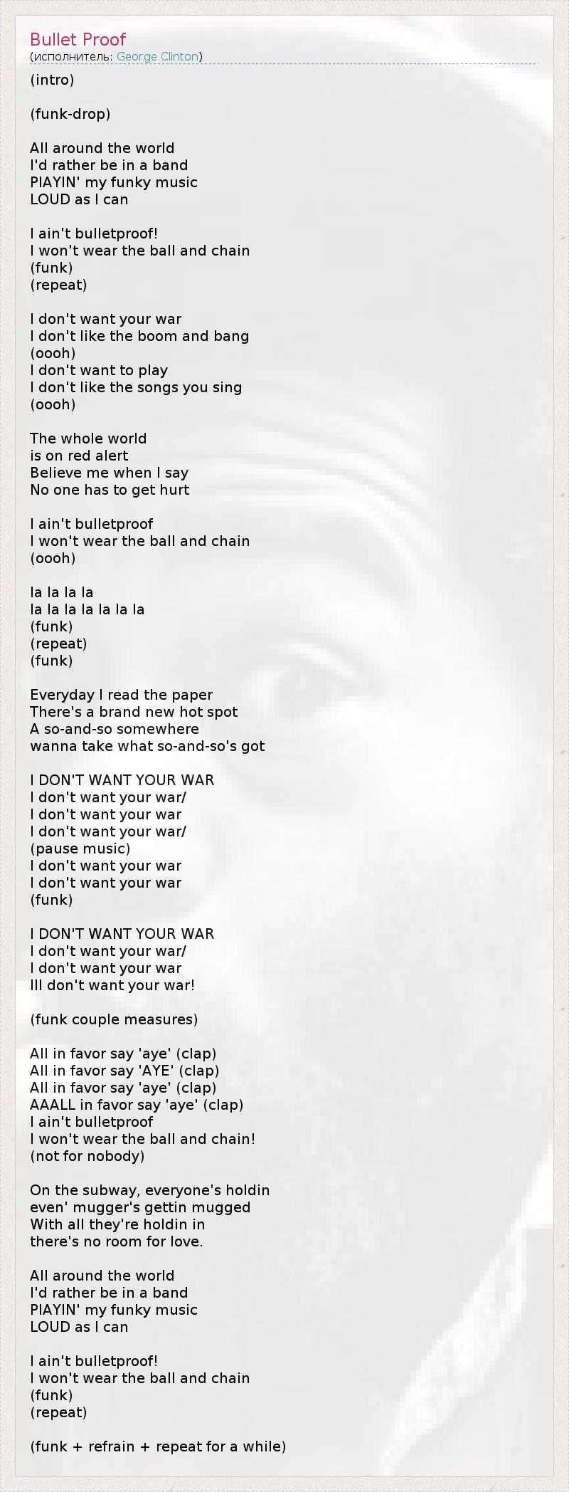 А как ты думаешь, о чем песня "Bullet Proof" ?