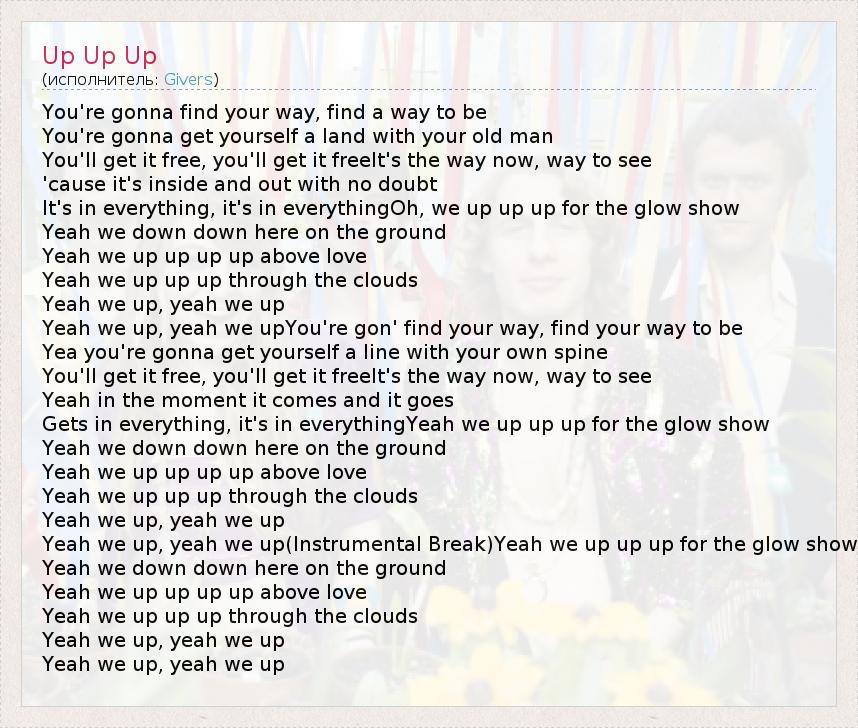 А как ты думаешь, о чем песня "Up Up Up" ?