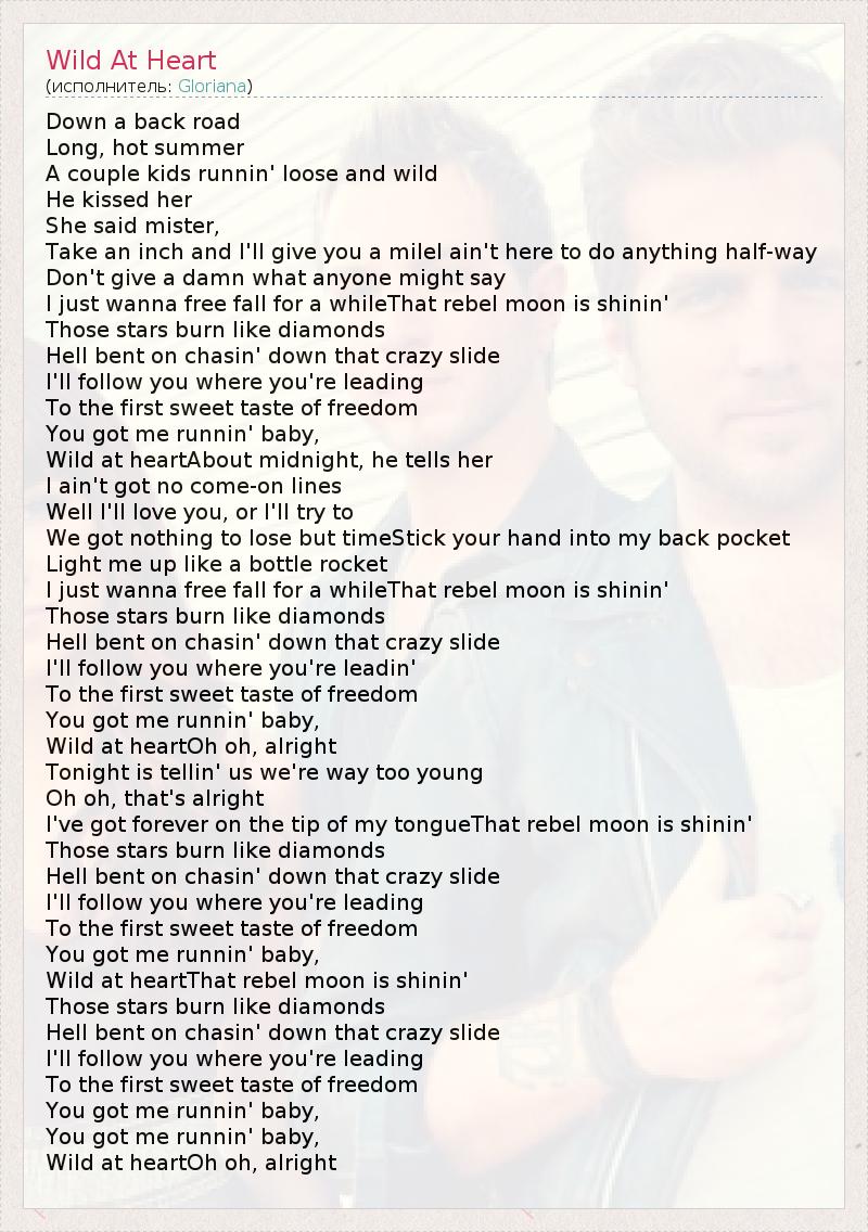 А как ты думаешь, о чем песня "Wild At Heart" ?