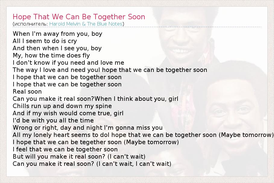 А как ты думаешь, о чем песня "Hope That We Can Be Together Soon" ?
