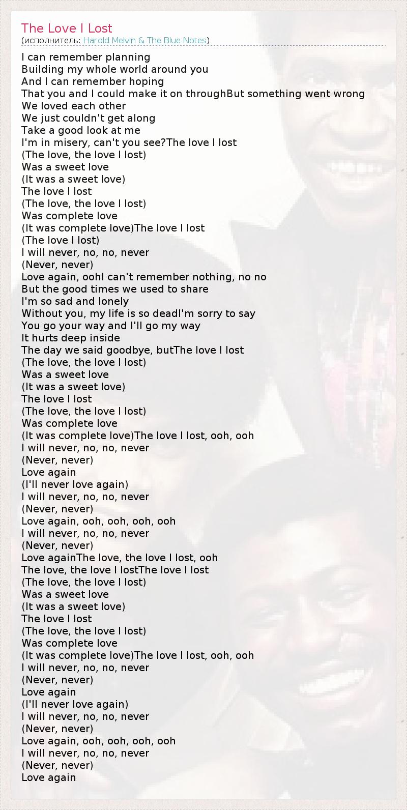 А как ты думаешь, о чем песня "The Love I Lost" ?