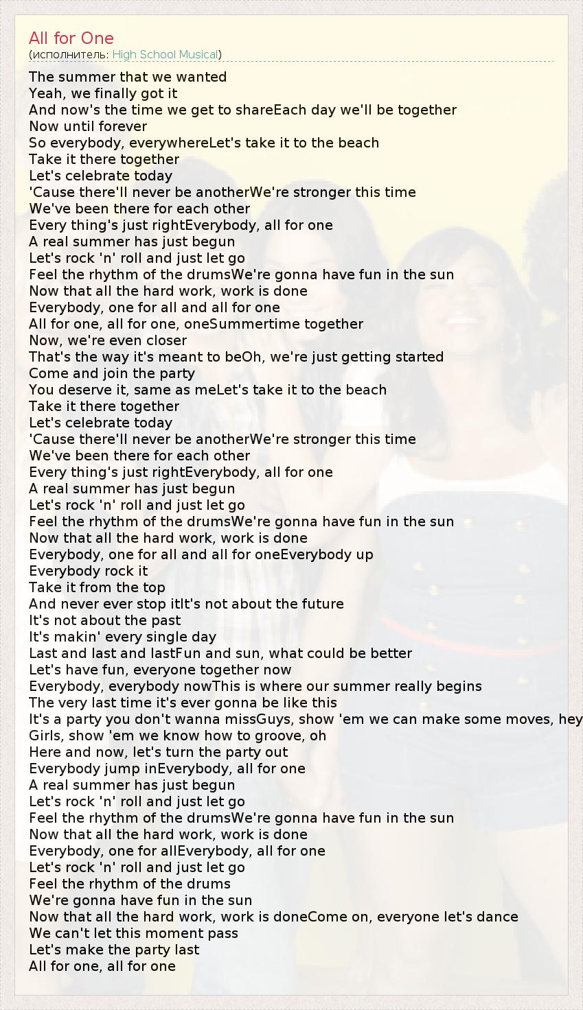 Знать бы  Unidos Para La Musica (c текстом)  Weekend!(текст)  Я никогда не забуду тебя  Only Hope (cover by MaryanaRo Марьяна Ро  Svegliarsi La Mattina  Для танца(как резать - написано,  La Vita E  Ah!Yah!Mah! (Official Audio) 2k17  Tombe La Neige (с текстом песни)  Viva La Vida (+ текст внутри)