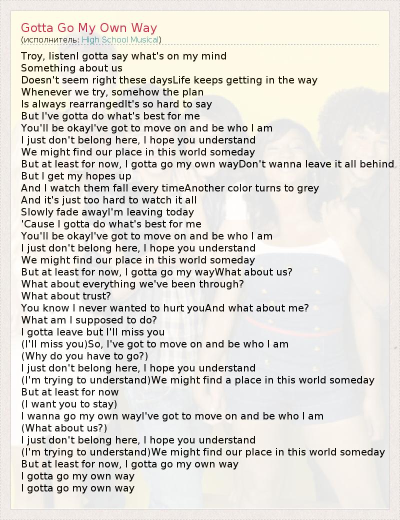 А как ты думаешь, о чем песня "Gotta Go My Own Way" ?