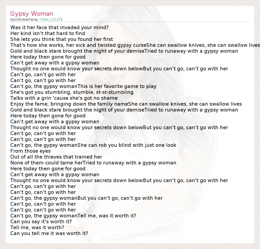 А как ты думаешь, о чем песня "Gypsy Woman" ?