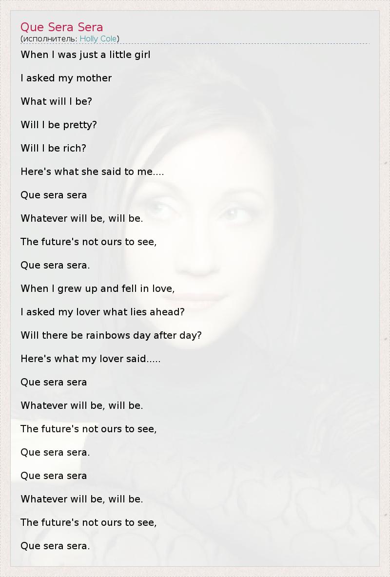 А как ты думаешь, о чем песня "Que Sera Sera" ?