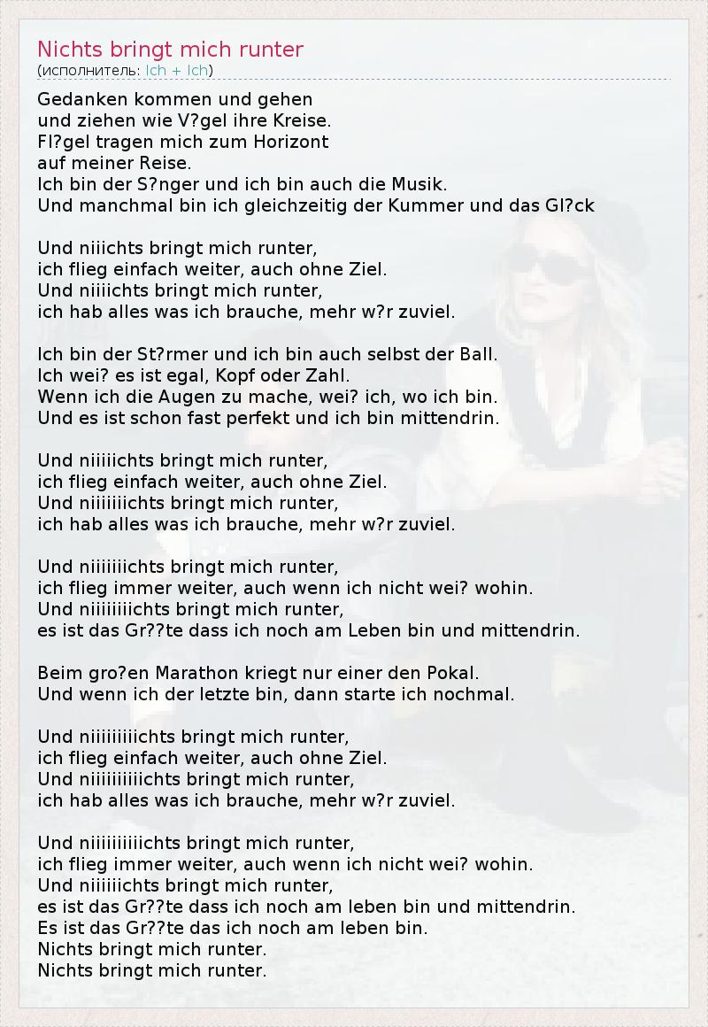 ГлавнаяИсполнителиIch + IchNichts bringt mich runter