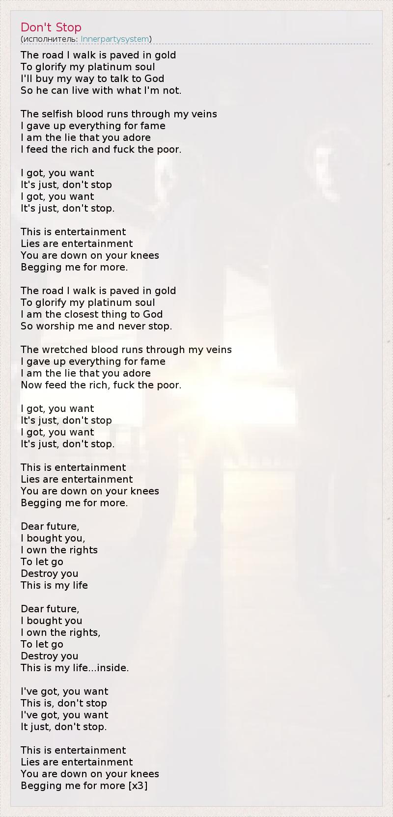 А как ты думаешь, о чем песня "Don't Stop" ?