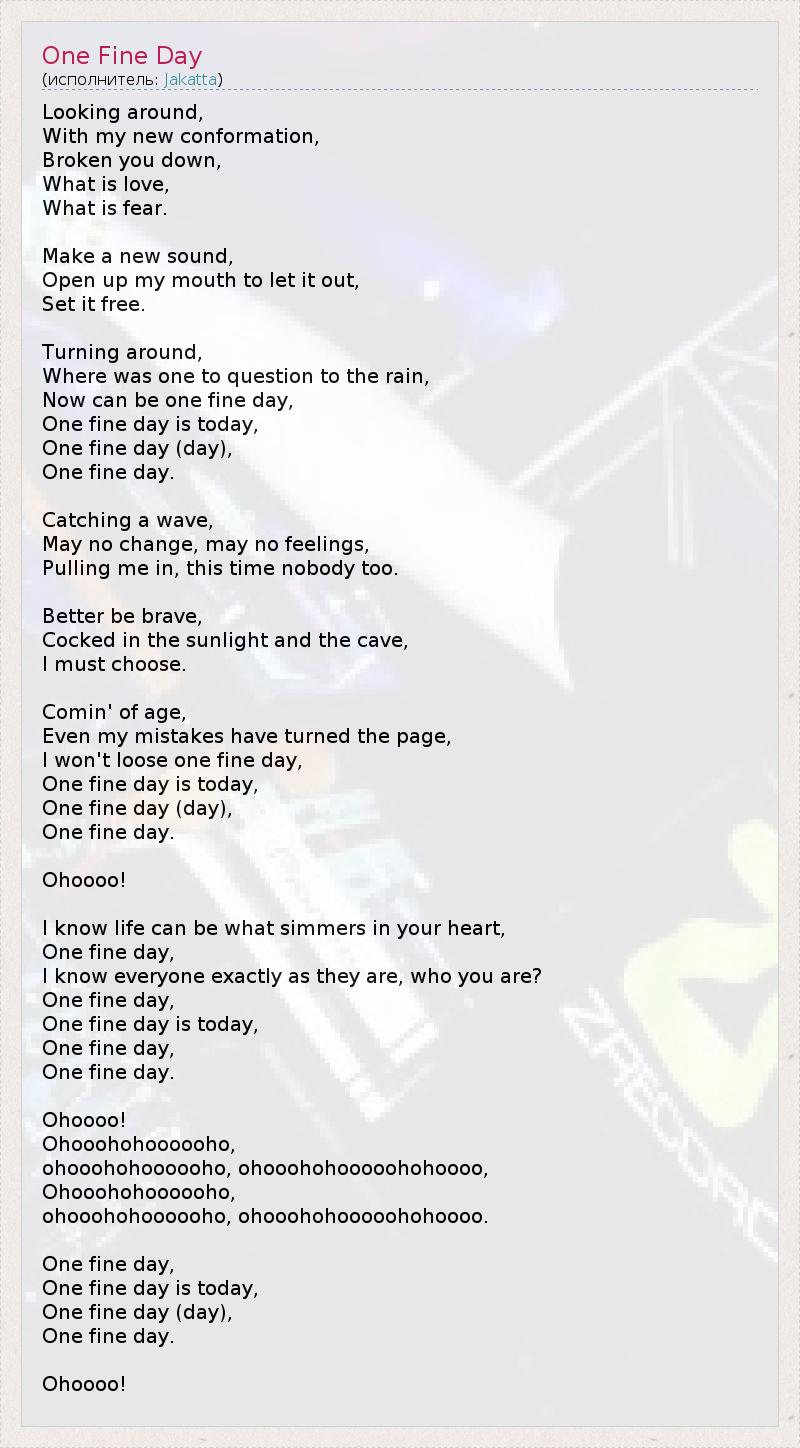 А как ты думаешь, о чем песня "One Fine Day" ?