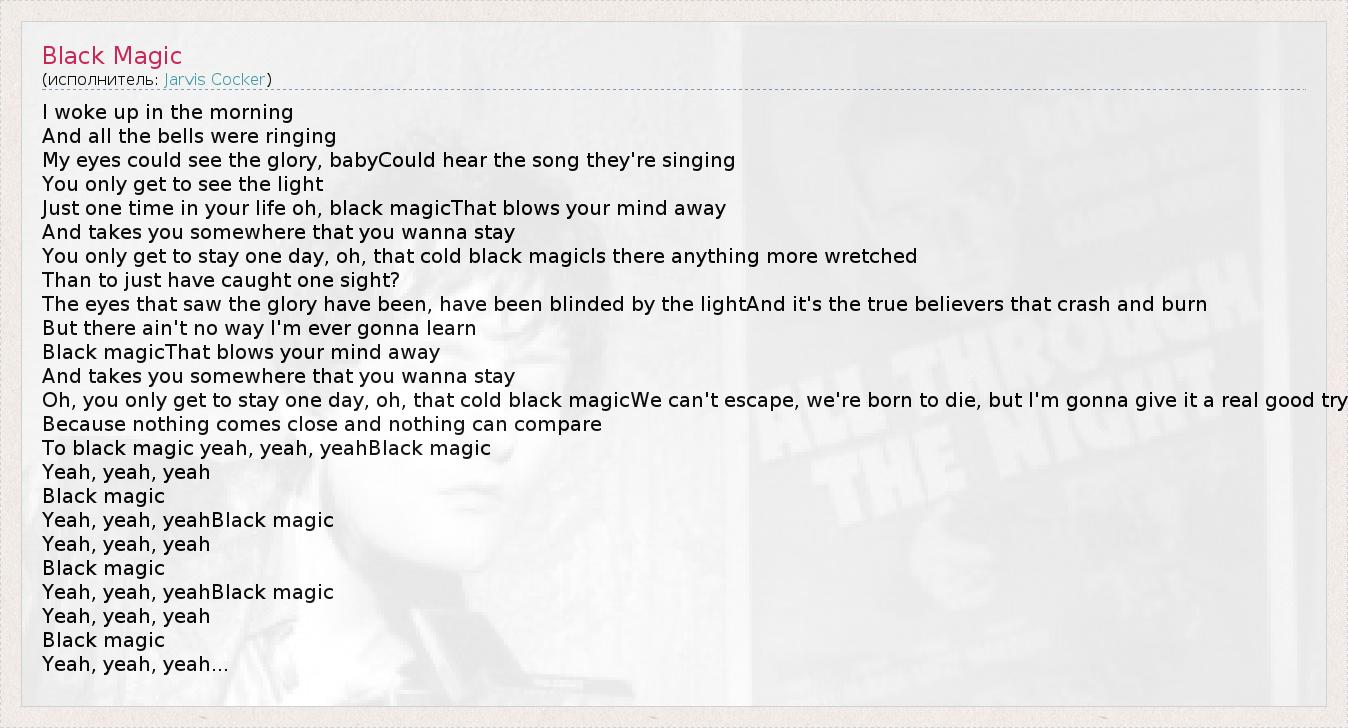 Oh, you only get to stay one day, oh, that cold black magicWe can't escape, we're born to die, but I'm gonna give it a real good try
