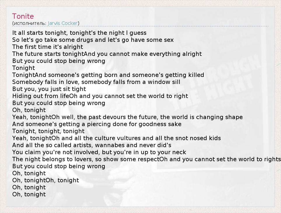 А как ты думаешь, о чем песня "Tonite" ?