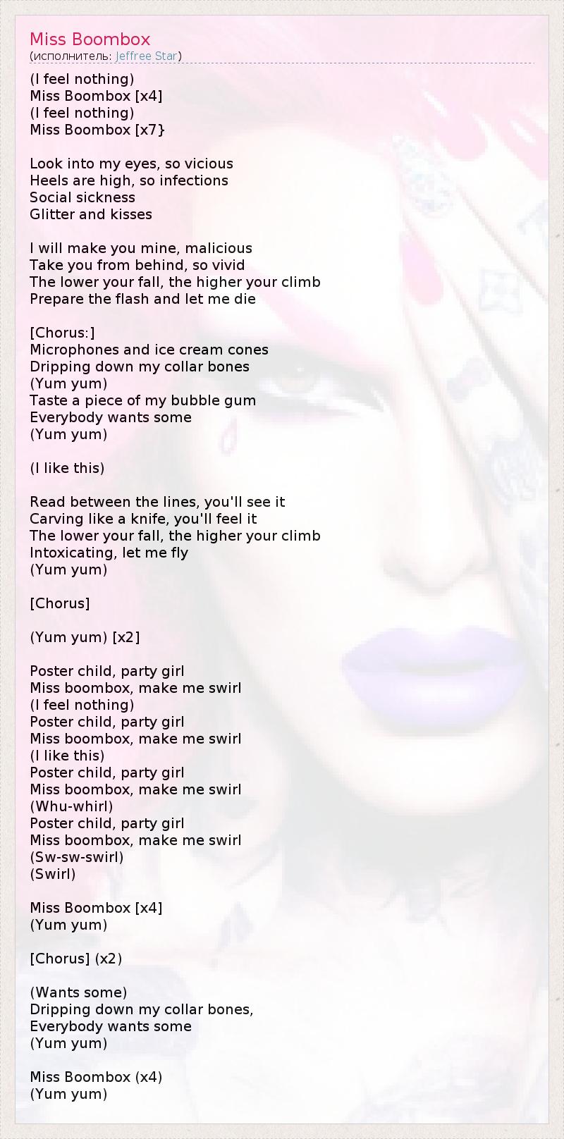 А как ты думаешь, о чем песня "Miss Boombox" ?
