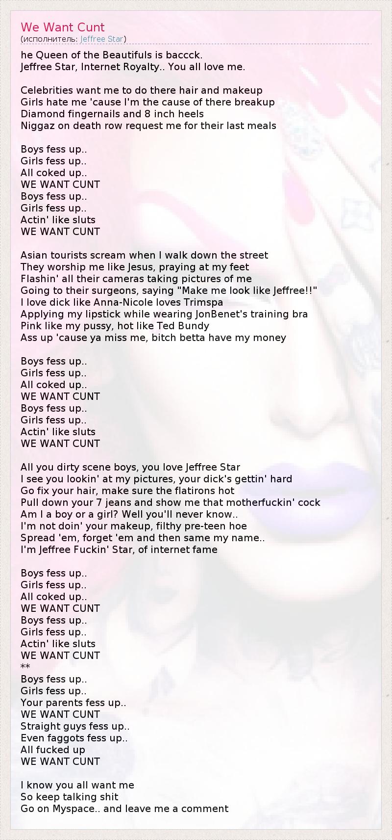 А как ты думаешь, о чем песня "We Want Cunt" ?