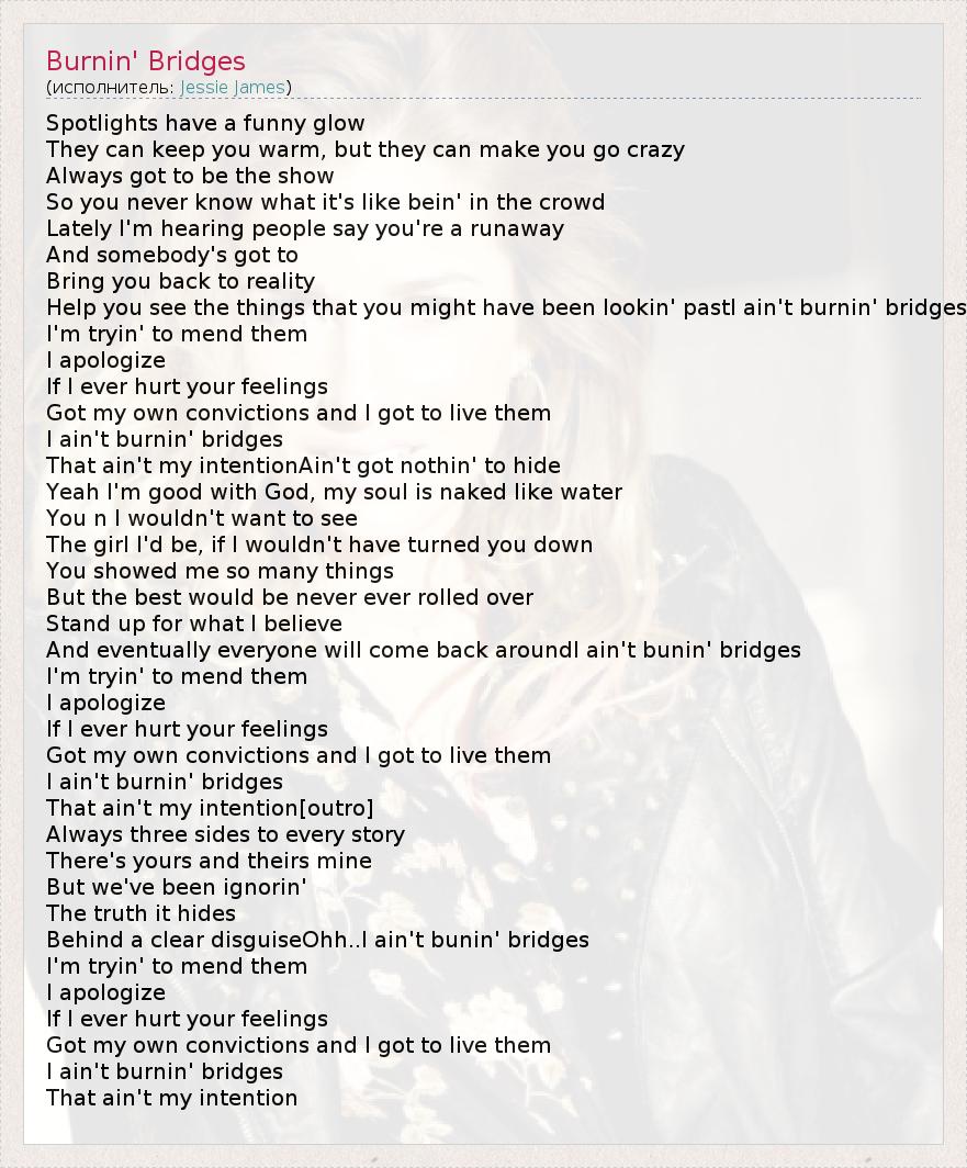 А как ты думаешь, о чем песня "Burnin' Bridges" ?