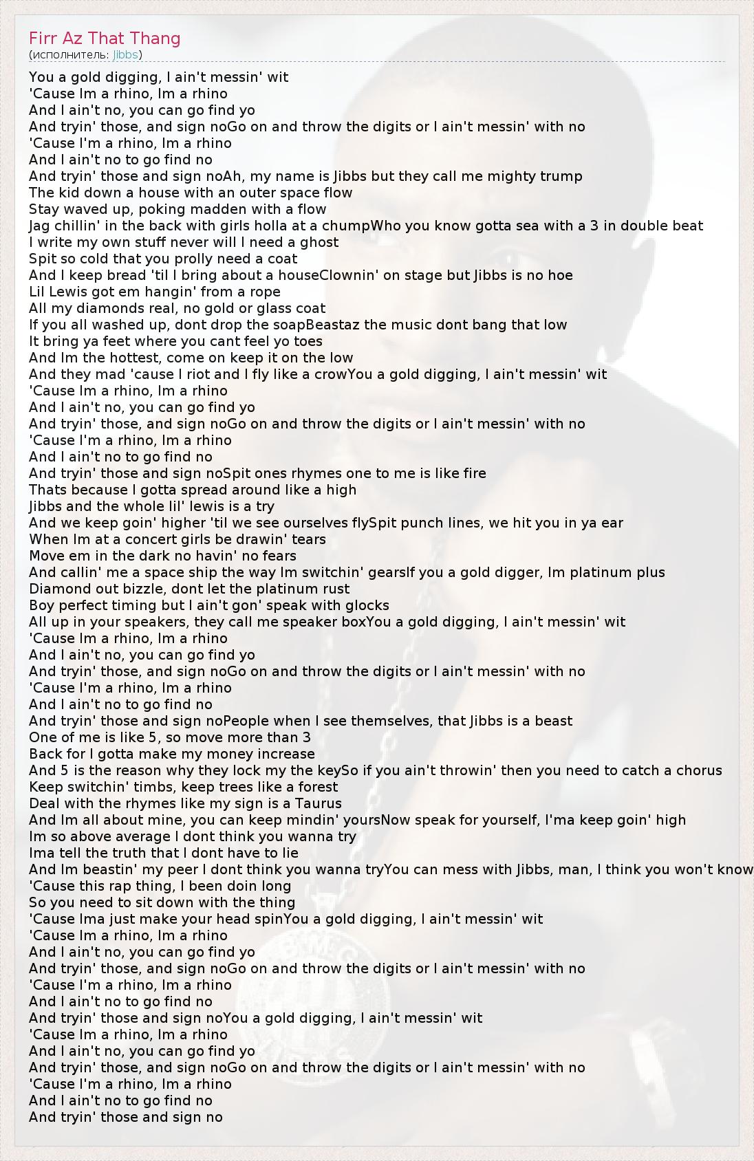 А как ты думаешь, о чем песня "Firr Az That Thang" ?
