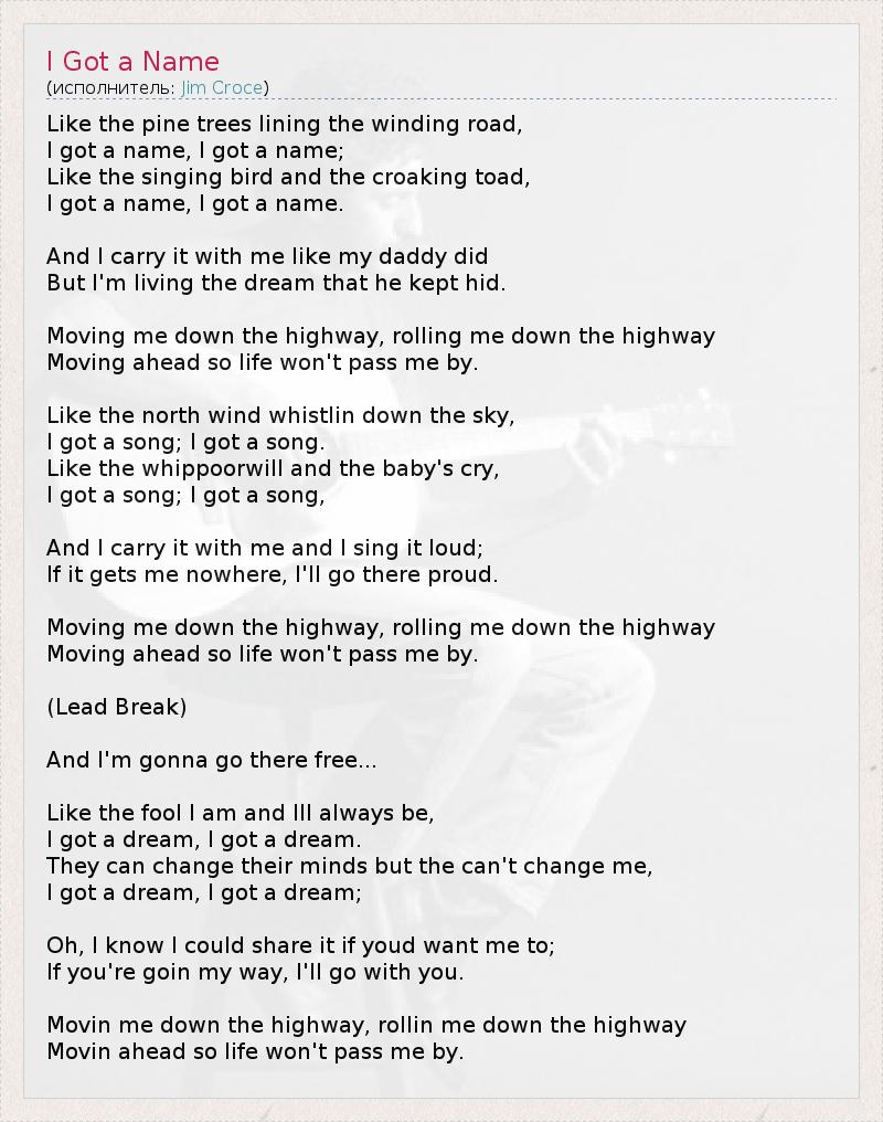А как ты думаешь, о чем песня "I Got a Name" ?