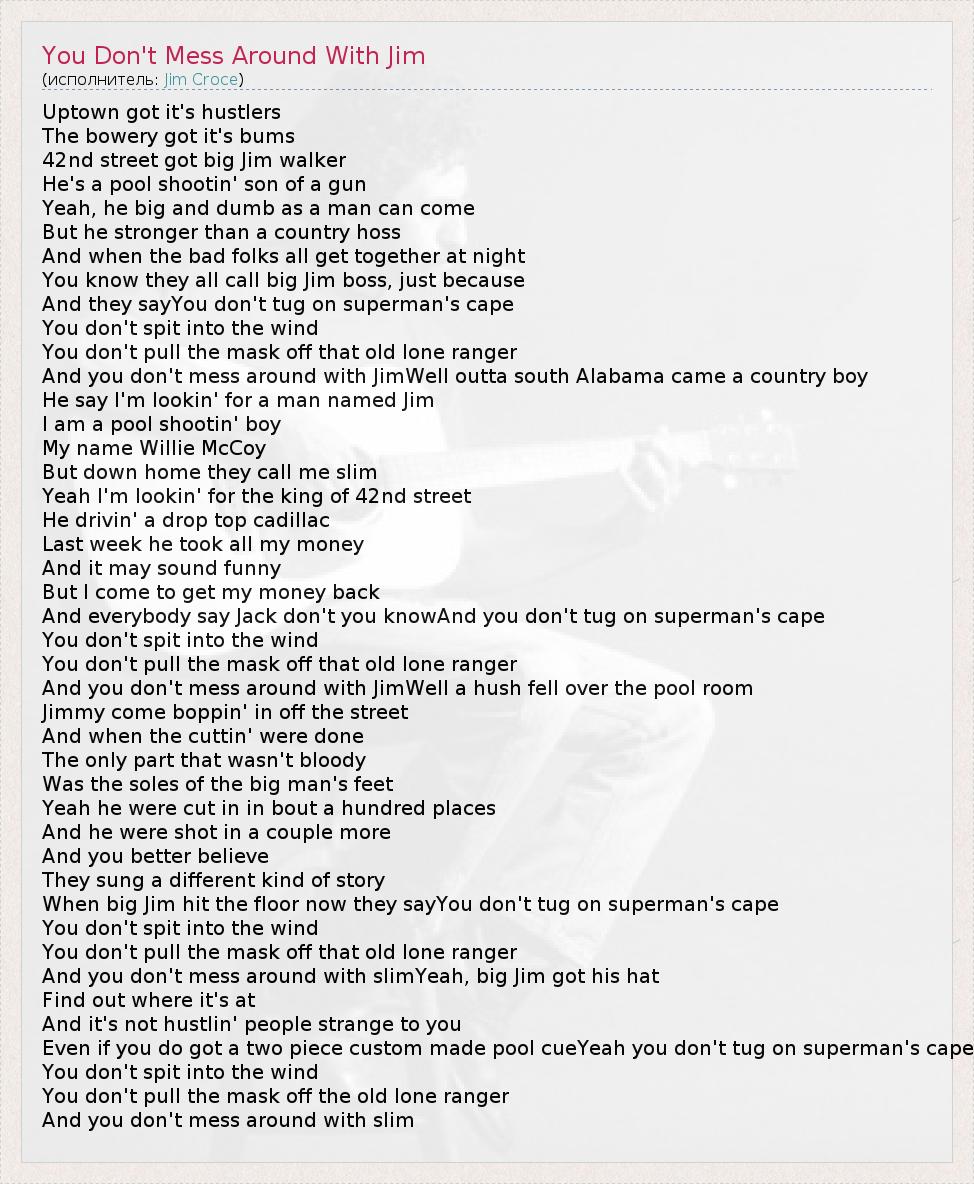 А как ты думаешь, о чем песня "You Don't Mess Around With Jim" ?