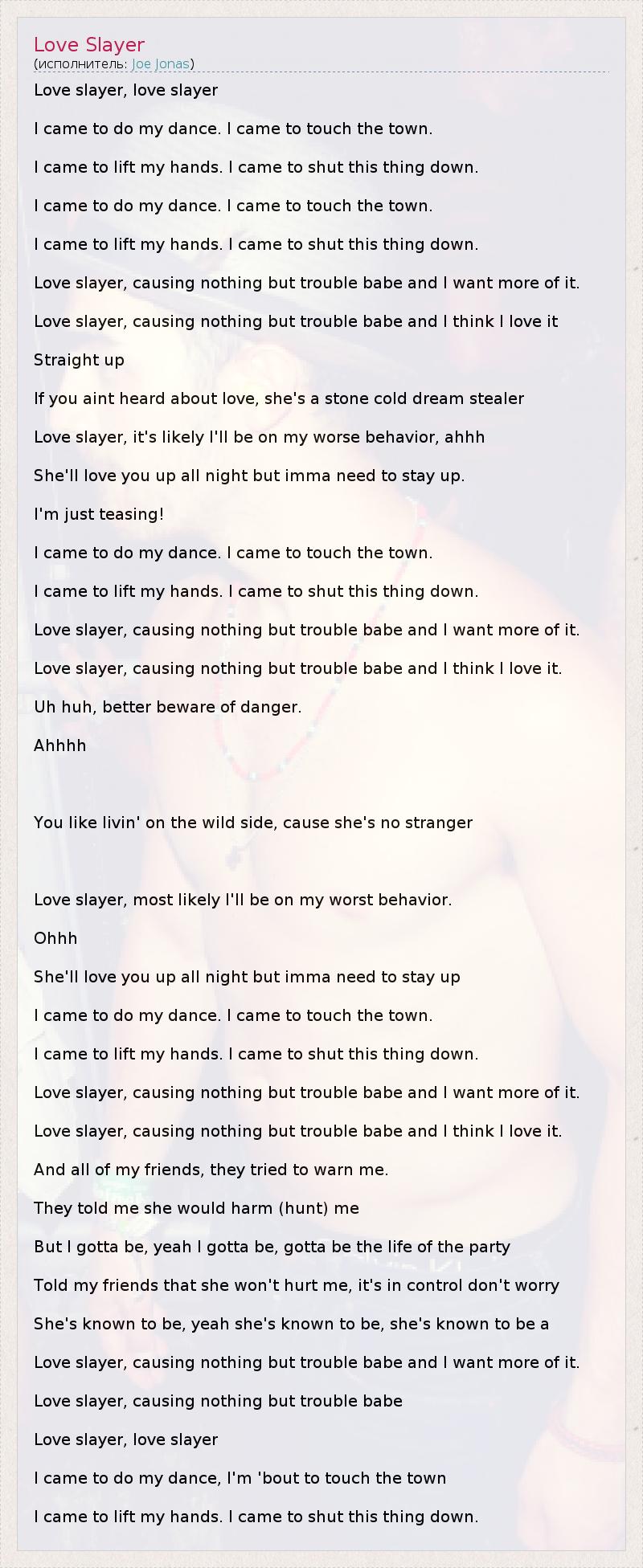 А как ты думаешь, о чем песня "Love Slayer" ?