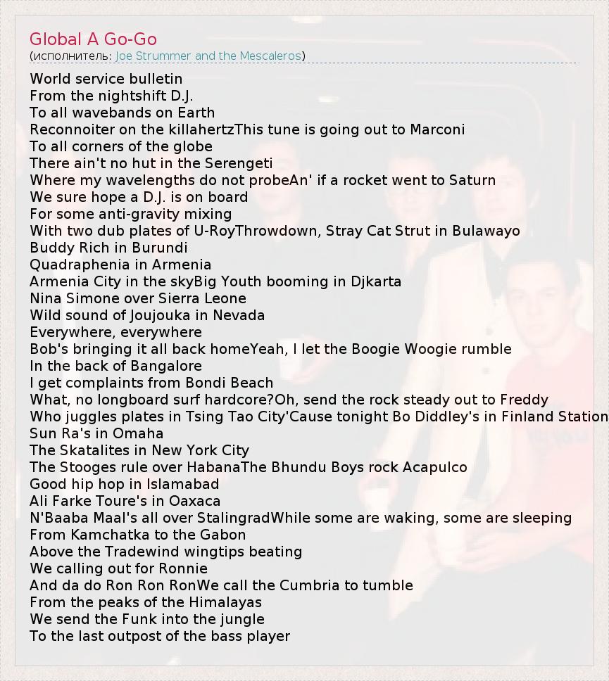 А как ты думаешь, о чем песня "Global A Go-Go" ?