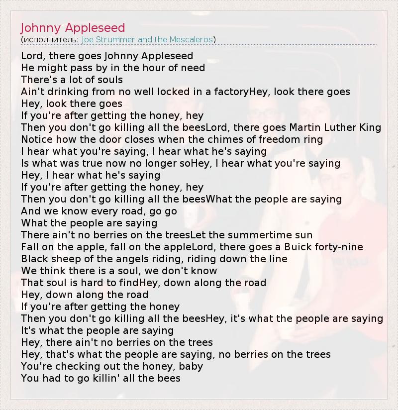 А как ты думаешь, о чем песня "Johnny Appleseed" ?