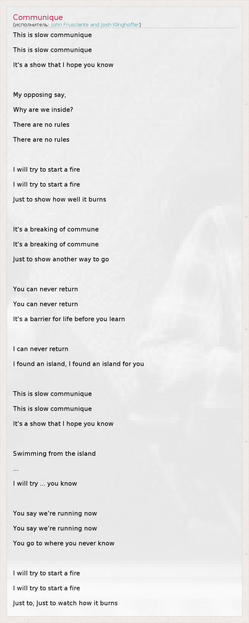 А как ты думаешь, о чем песня "Communique" ?