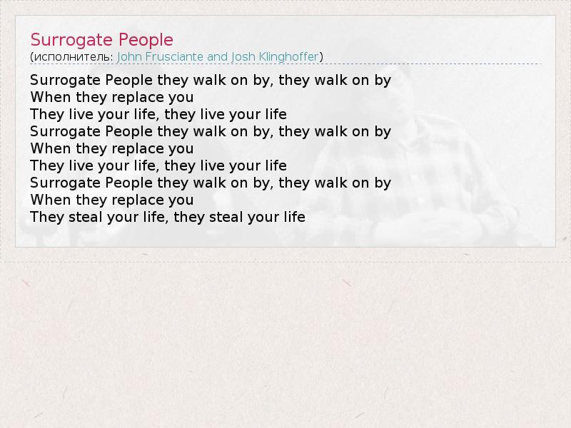 А как ты думаешь, о чем песня "Surrogate People" ?
