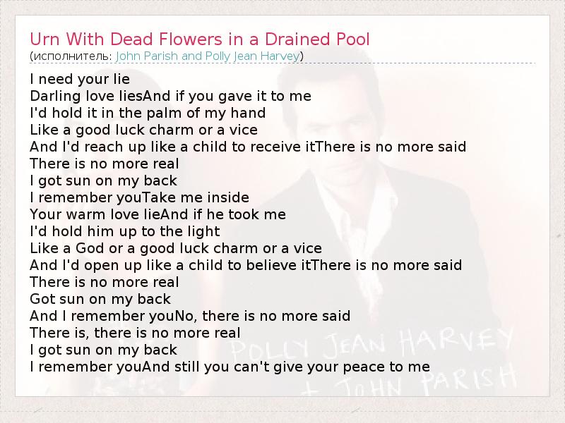 ГлавнаяИсполнителиJohn Parish and Polly Jean HarveyUrn With Dead Flowers in a Drained Pool