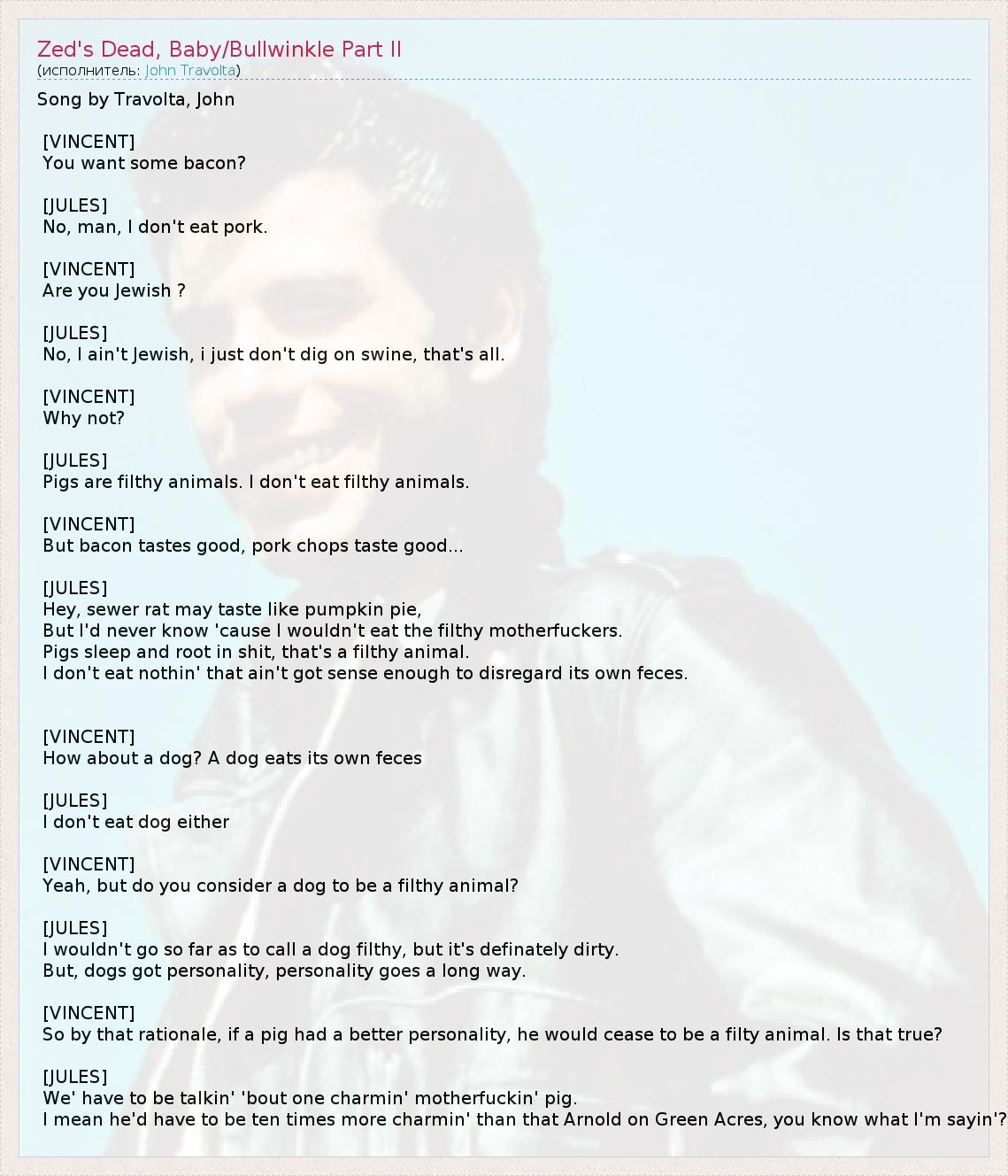 ГлавнаяИсполнителиJohn TravoltaZed's Dead, Baby/Bullwinkle Part II